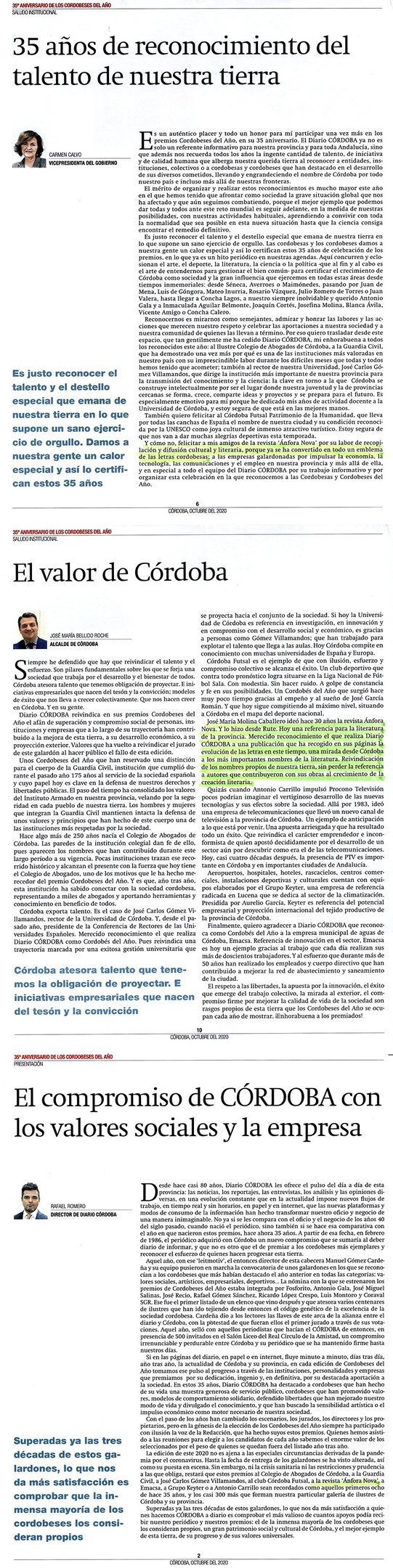 La Revista Literaria y Editorial ÁNFORA NOVA fue galardonada por el Consejo de Gobierno de la Junta de Andalucía con la