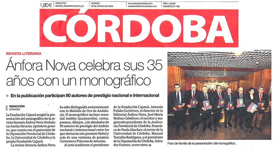 La Revista Literaria y Editorial ÁNFORA NOVA fue galardonada por el Consejo de Gobierno de la Junta de Andalucía con la