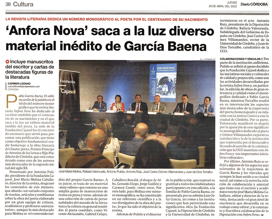 Ánfora Nova saca a la luz diverso material inédito de García Baena