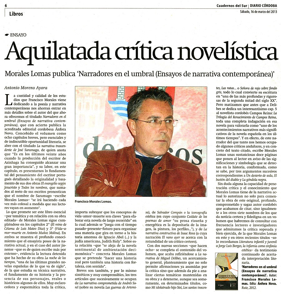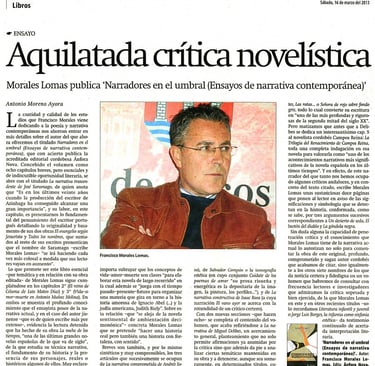 Morales Lomas publica "Narradores en el umbral (Ensayos de narrativa contemporánea)"