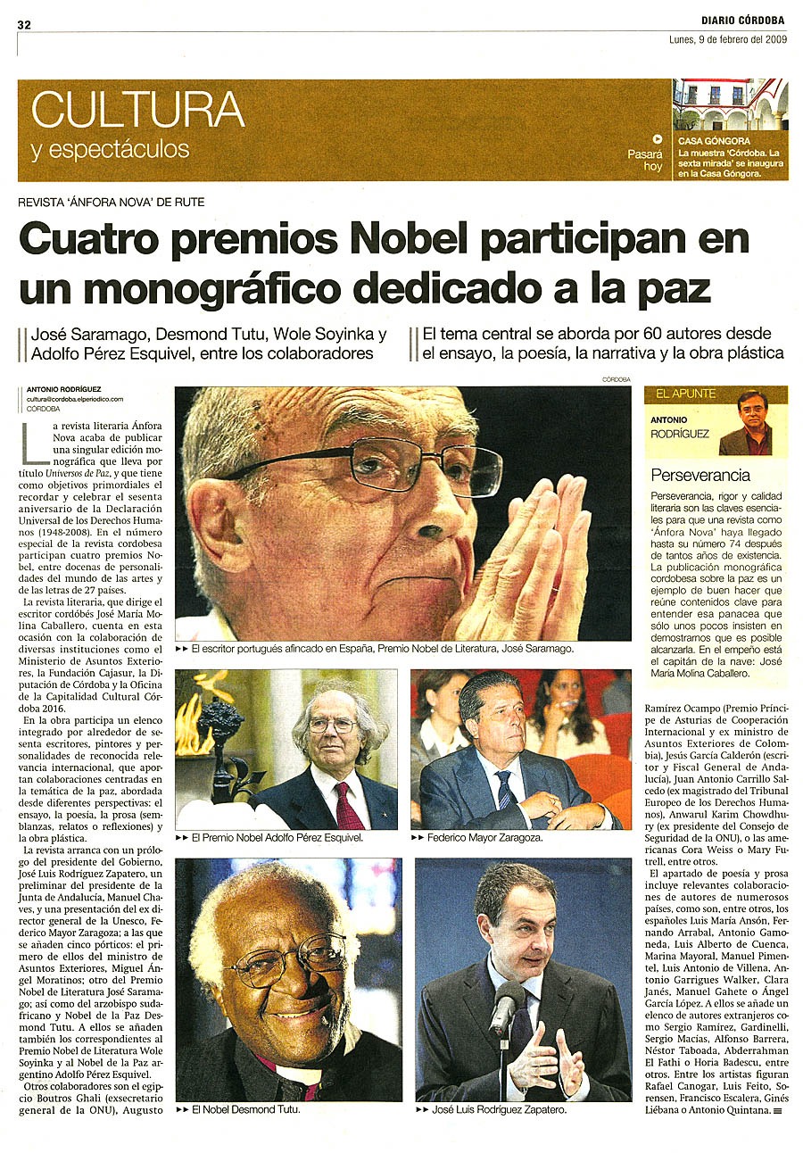 La Revista Literaria y Editorial ÁNFORA NOVA fue galardonada por el Consejo de Gobierno de la Junta de Andalucía con la