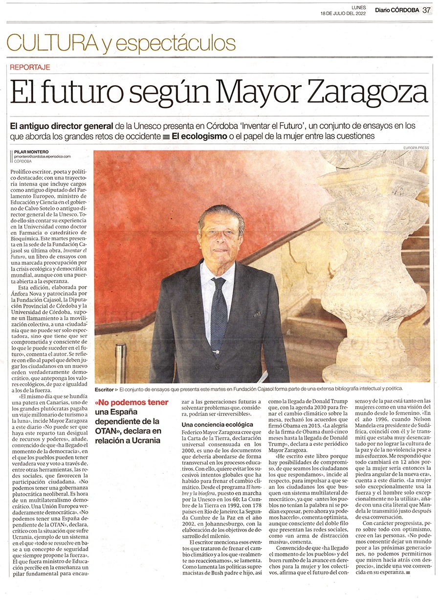 El antiguo director general de la Unesco presenta en Córdoba "Inventar el futuro", un conjunto de ensayos que aborda los grandes retos de occidente