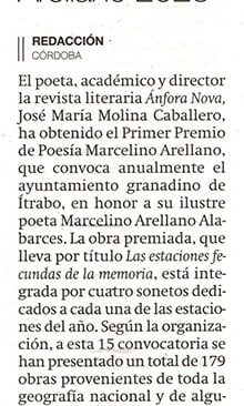 La Revista Literaria y Editorial ÁNFORA NOVA fue galardonada por el Consejo de Gobierno de la Junta de Andalucía con la