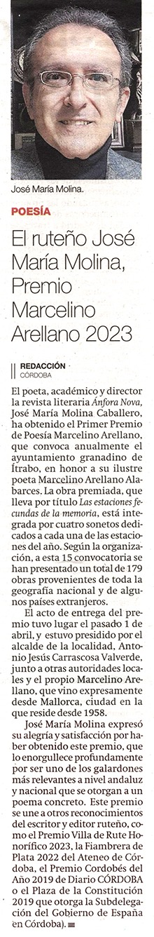 El ruteño José María Molina, Premio Marcelino Arellano 2023