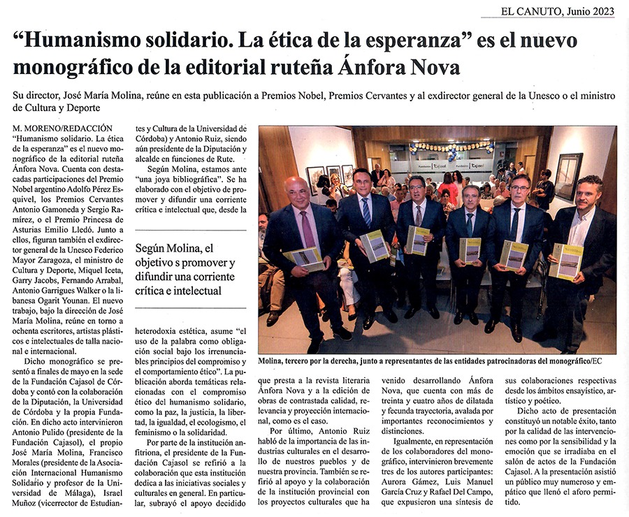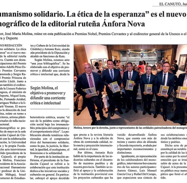 "Humanismo solidario. La ética de la esperanza" es el nuevo monográfico de la editorial ruteña Anfora Nova