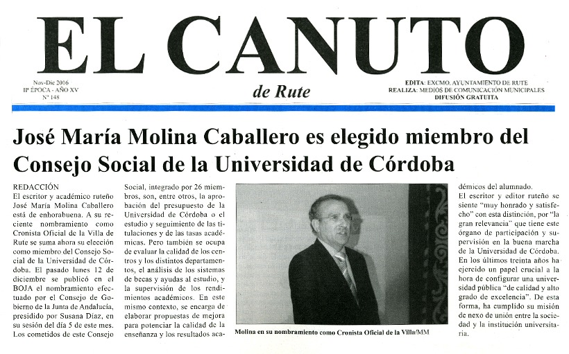 José María Molina Caballero es elegido miembro del Consejo Social de la Universidad de Córdoba