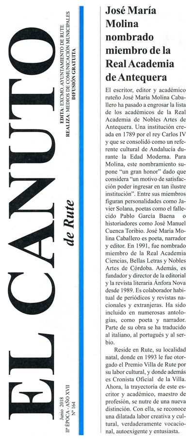Jose María Molina nombrado miembro de la Real Academia de Antequera