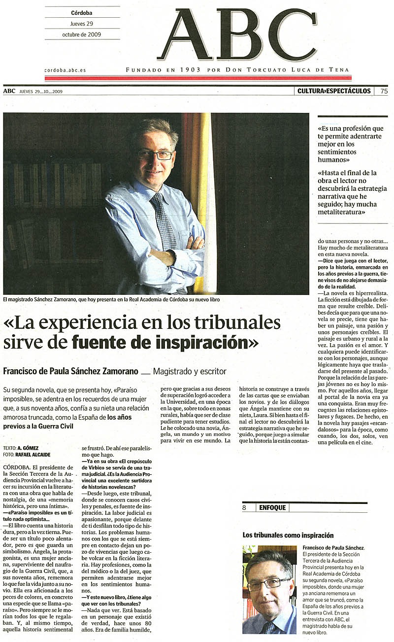 Su segunda novela, que se presenta hoy, "Paraíso imposible" se adentra en los recuerdos de una mujer que, a sus noventa años, confía a su nieta una relación amorosa truncada, como la España de los años previos a la Guerra Civil
