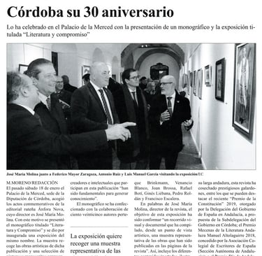 Lo ha celebrado en el Palacio de la Merced con la presentación de su monográfico y la exposición titulada "Literatura y compromiso"