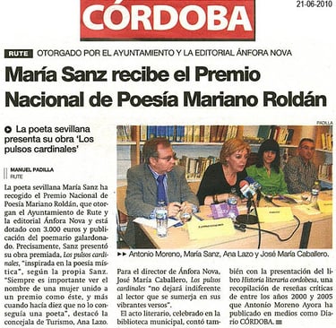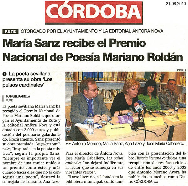 María Sanz recibe el Premio Nacional de Poesía Mariano Roldán