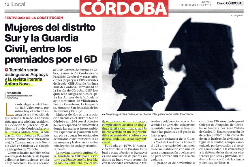 La Revista Literaria y Editorial ÁNFORA NOVA fue galardonada por el Consejo de Gobierno de la Junta de Andalucía con la