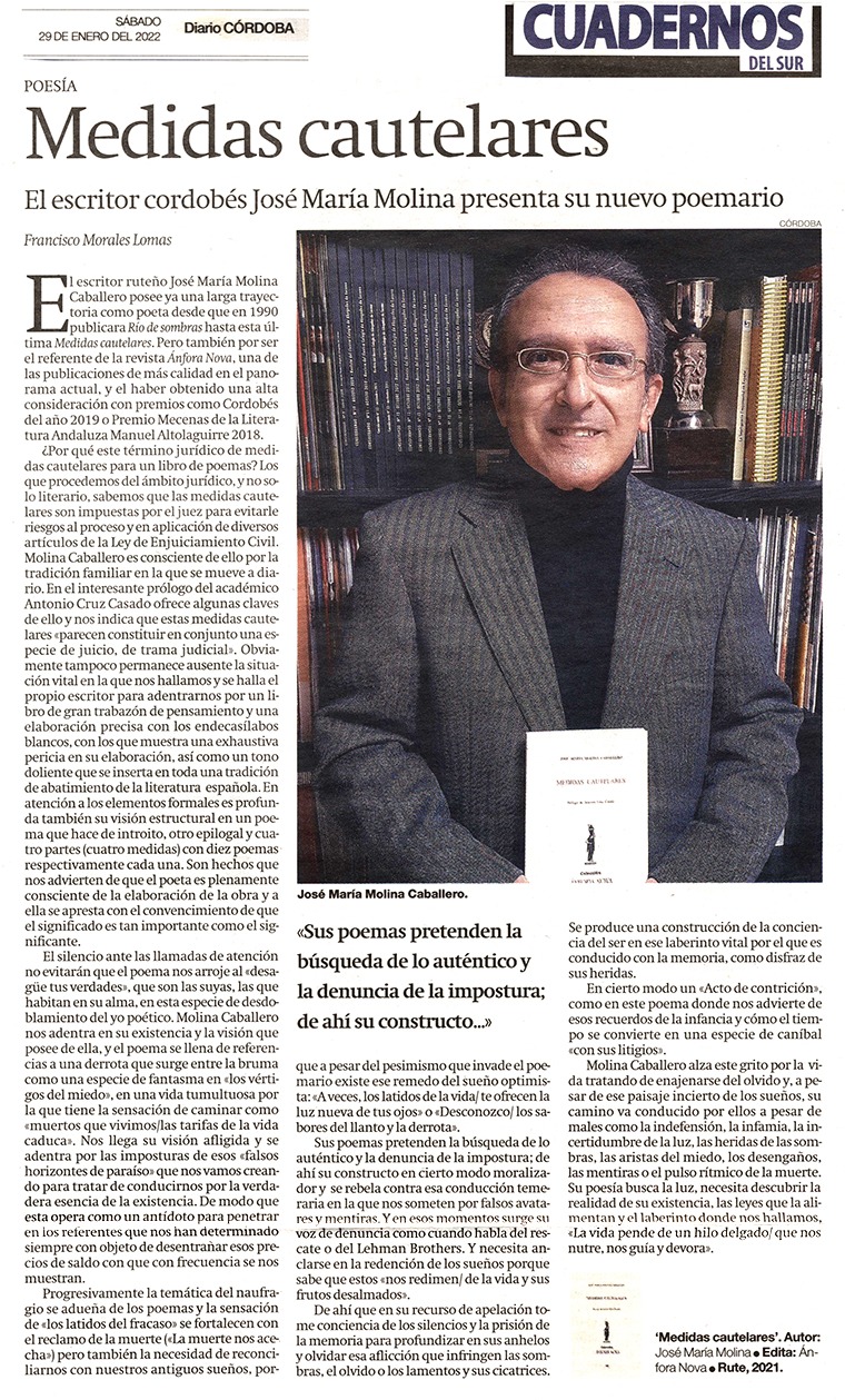 El escritor cordobés José María Molina presenta su nuevo poemario
