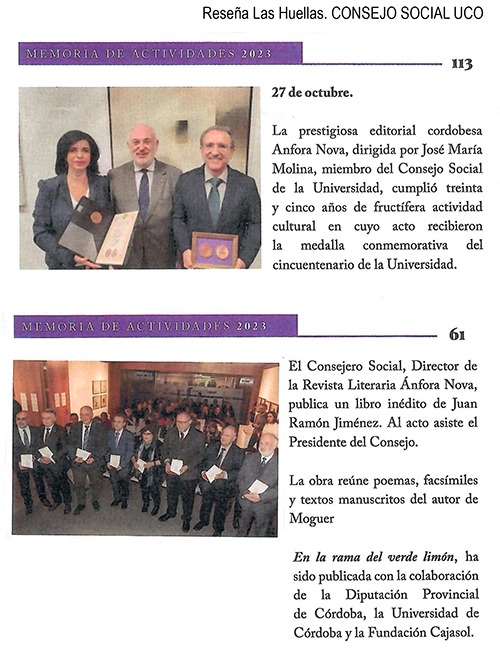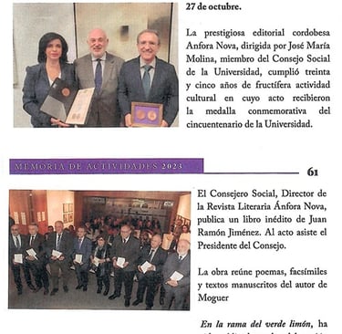 La Revista Literaria y Editorial ÁNFORA NOVA fue galardonada por el Consejo de Gobierno de la Junta de Andalucía con la
