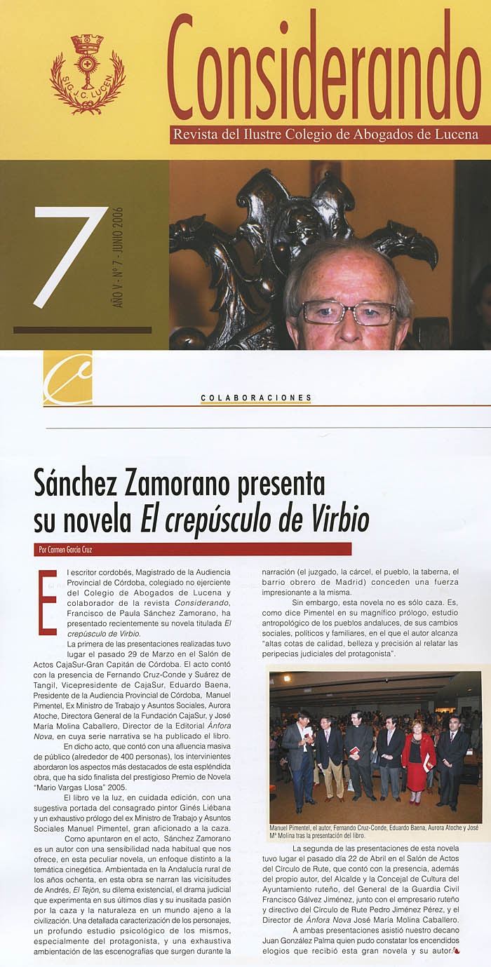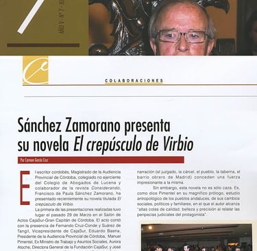 Sánchez Zamorano presenta su novela El crepúsculo de Virbio