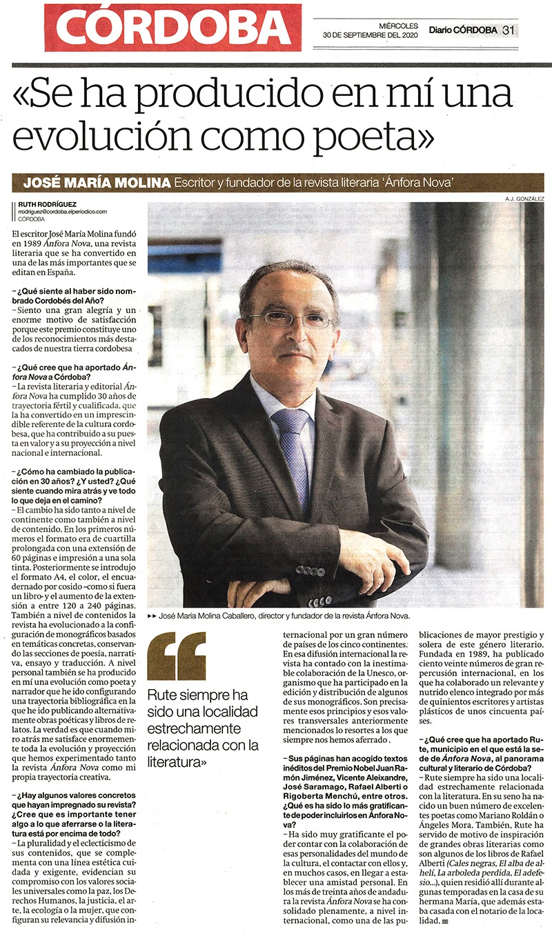José María Molina. Escritor y fundador de la revista literaria "Ánfora Nova"