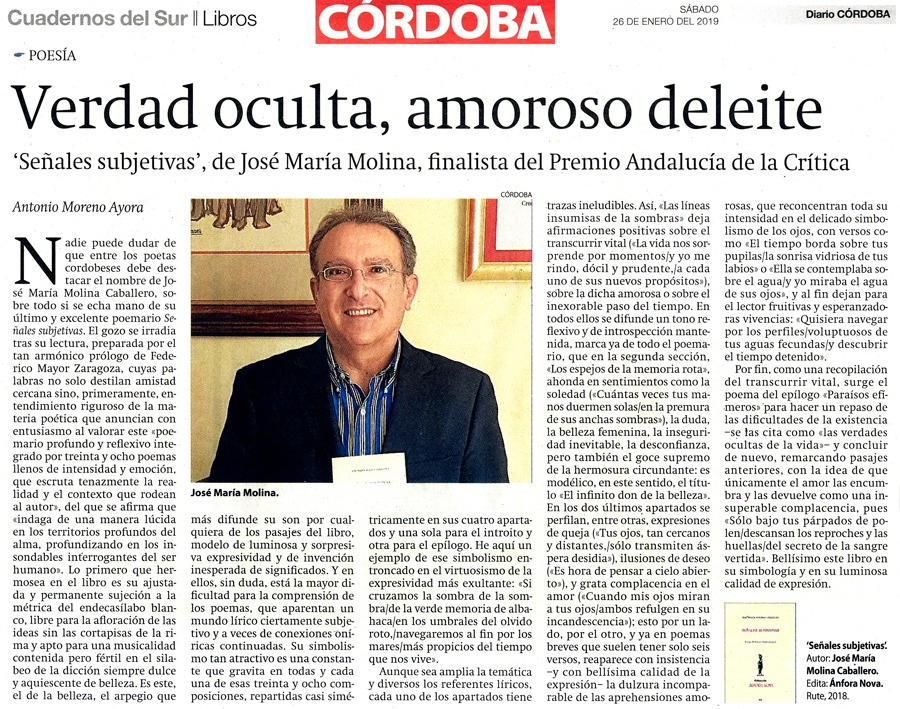 "Señales subjetivas", de José María Molina, finalista del Premio Andalucía de la Crítica
